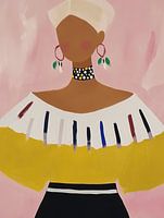 Kleurrijke illustratie, abstract portret in de trend van nu. Een bijzondere bikvanger! Kies zelf het formaat en materiaal bij dit werk en maak het helemaal passend voor jouw interieur.