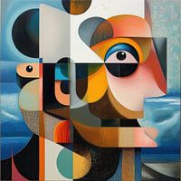 De kleuren in dit kunstwerk zijn rijk en contrastrijk: krachtige tinten zoals blauw, rood, geel, paars en groen worden gecombineerd met subtielere overgangen, waardoor het schilderij een energieke, bijna surrealistische uitstraling krijgt. De abstracte weergave zorgt ervoor dat het geheel open blijft voor interpretatie – van een innerlijke blik tot symboliek rondom waarneming en bewustzijn.