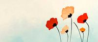 Een zacht kleurenpalet wordt gecombineerd met levendige klaproosbloesems die fris leven en energie uitstralen. De gebogen lijnen en delicate contouren creëren een harmonieuze sfeer die ideaal is voor een woonkamer of gezellige keuken. Inspiratie bloeit hier op, terwijl de sierlijke bloemen de zintuigen aanspreken en een gevoel van lichtheid overbrengen.