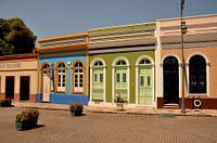 Deze foto van kleurrijke, koloniale huisjes, gelegen aan een plein in Manaus, Brazilië, is genomen op 26 juli 2017.