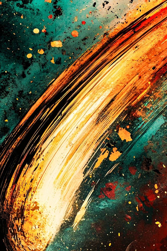 Een krachtig en dynamisch ontwerp dat de essentie van een komeet vastlegt in een kleurrijk universum. Dit kunstwerk combineert vurige tinten met donkere, mysterieuze accenten om een gevoel van beweging en energie op te roepen. Perfect voor wie een uniek statement wil maken in een moderne ruimte. De krachtige penseelstreken en de levendige kleuren brengen leven in elke kamer, van een eigentijds kantoor tot een gezellige slaapkamer. Dit is niet zomaar een schilderij, maar een inspiratiebron voor avontuurlijke geesten en ruimtefanaten.