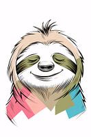 Deze speelse en unieke illustratie van een lachende luiaard brengt een vrolijke en relaxte sfeer in elke ruimte. Met zijn zachte kleurenpalet en moderne digitale stijl is dit ontwerp perfect voor een eigentijds interieur. De combinatie van beige, groen, roze en blauw zorgt voor een rustgevend maar ook kleurrijk accent, ideaal voor woonkamers, kantoren of kinderkamers. Deze charmante luiaard, afgebeeld met een ontspannen glimlach en omgeven door subtiele geometrische patronen, straalt warmte en gezelligheid uit. Of je nu op zoek bent naar een opvallend kunstwerk of een rustgevend element om je interieur compleet te maken, deze illustratie is een uitstekende keuze!