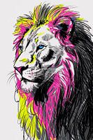 Deze opvallende en moderne afbeelding van een leeuw combineert het traditionele beeld van het majestueuze dier met een speelse, kleurrijke twist. De levendige tinten van neonroze, felgeel en blauw contrasteren prachtig met de scherpe, zwarte lijnen, wat het geheel een dynamische graffiti-achtige uitstraling geeft. De heldere,…