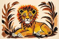 Dit kleurrijke ontwerp toont een majestueuze leeuw met een opvallende oranje en gele manen, die zijn kracht en gratie uitstraalt. De brede penseelstreken en de dynamische kleurcontrasten zorgen ervoor dat het schilderij vol leven en energie zit. Omringd door natuurachtige elementen lijkt de leeuw vredig maar alert, wat zijn indrukwekkende aanwezigheid nog verder versterkt. De speelse, expressieve stijl geeft het kunstwerk een moderne en levendige uitstraling, perfect voor een kantoor of woonkamer waar een krachtig en stijlvol accent gewenst is. Dit ontwerp is een blikvanger voor liefhebbers van dierenkunst en expressieve schilderijen.
