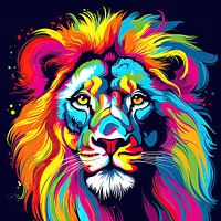 Dit werk vangt de kracht en pracht van een leeuw op een kleurrijke en expressieve manier. Met levendige tinten en dynamische penseelstreken wordt het majestueuze dier tot leven gebracht. De contrasterende kleuren benadrukken de details van de manen, terwijl de intense blik van de leeuw een gevoel van trots en kracht uitstraalt.