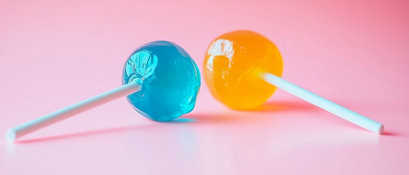 Koop de foto Kleurrijke lolly's op pastelkleurige achtergrond van Poster Art Shop als print op canvas, aluminium dibond, (ingelijste) fotoprint, behang en ArtFrame. Voor jou op maat geprint in Fine-Art kwaliteit.