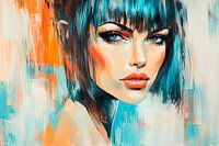 Met een fascinerend samenspel van levendige kleuren en expressieve ogen trekt dit kunstwerk ieders aandacht. De krachtige aanwezigheid van de figuur straalt zowel schoonheid als zelfvertrouwen uit, perfect voor een moderne woonkamer of creatief kantoor. Een echte blikvanger die inspiratie en dynamiek uitstraalt.