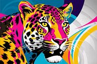 Deze kleurrijke en gedurfde illustratie toont een prachtig gestileerde luipaardkop in een opvallende combinatie van felle kleuren. De mix van gele, roze, blauwe en zwarte tinten zorgt voor een dynamisch effect dat de aandacht trekt en elke ruimte direct opvrolijkt. De abstracte achtergrond met vloeiende lijnen voegt extra energie toe aan het geheel, waardoor dit kunstwerk perfect is voor liefhebbers van moderne en levendige decoratie. Of het nu in een woonkamer, kantoor of creatieve ruimte wordt opgehangen, dit ontwerp brengt een speelse, moderne sfeer in elke omgeving. De levendige kleuren en het gedetailleerde patroon maken het een eyecatcher die goed past bij eigentijdse interieurs.