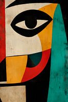 Een fascinerend samenspel van felle kleuren en geometrische vormen betovert de kijker. De expressieve afbeelding van een gezicht met een opvallend oog en lichtgevend groenblauw wekt nieuwsgierigheid op en zet aan tot nadenken. Perfect voor een woonkamer, brengt het artistieke flair en een inspirerende sfeer in de kamer.