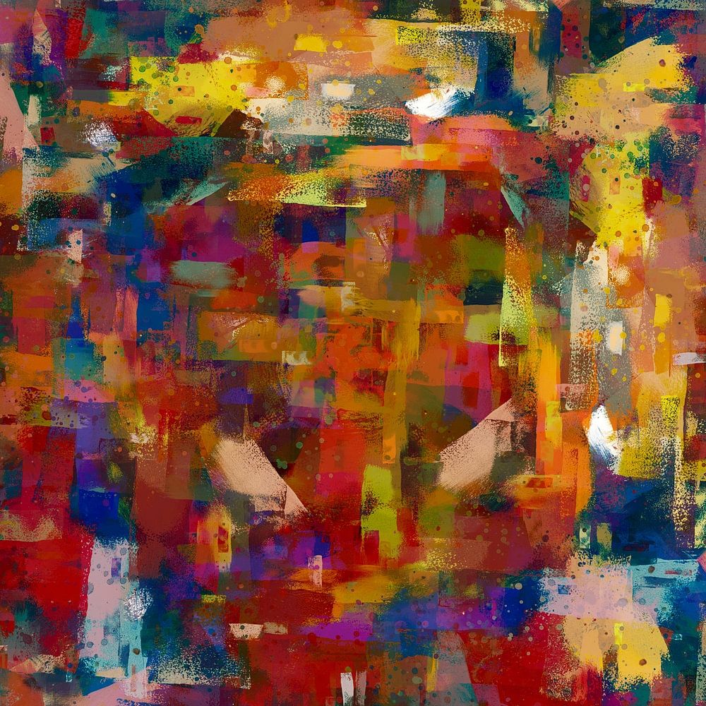 "Bunte Menge" (Kleurrijke menigte) is een kleurrijk, digitaal, abstract werk, deel van een serie, in verzadigde kleuren. Een veelheid aan brede penseelstreken in verzadigde tinten vult het beeld; daarnaast zijn er spatten van kleur.