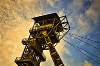 Mijnschacht in het Ruhrgebied tegen een kleurrijke lucht.