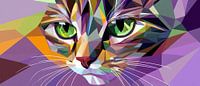 Een fascinerend samenspel van kleurrijke, geometrische vormen laat de ogen van een majestueuze kat fonkelen. De levendige groentinten en dynamische lijnen geven het kunstwerk een moderne uitstraling. Perfect voor een woonkamer, het voegt een speelse elegantie toe aan elke kamer en trekt ieders aandacht.