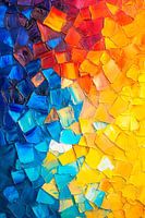 Een duizelingwekkend kleurenspel ontvouwt zich in levendige blauw- en geeltinten die botsen in harmonieuze patronen. Deze dynamische compositie brengt energie en vreugde in elke kamer. Perfect voor de keuken of woonkamer, het plaatst vrolijke accenten en inspireert tot gezellige momenten. Een echte blikvanger die de zintuigen stimuleert!