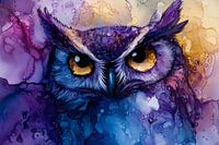 Deze opvallende kunst met een mysterieuze uil in levendige kleuren zoals paars, blauw, geel en roze is een echte blikvanger. Het ontwerp combineert abstracte expressie met intrigerende details, perfect voor moderne interieurs. Deze unieke creatie voegt een gevoel van diepte en mysterie toe aan elke ruimte. Geschikt voor woonkamers, slaapkamers of kantoren.