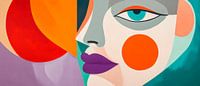 Een levendig spel van kleuren en vormen ontvouwt zich in dit expressieve portret. De intrigerende ogen en opvallende lipkleur geven de foto een boeiende aanwezigheid. De harmonieuze combinatie van gedurfde en zachte tinten maakt het een perfecte aanwinst voor de woonkamer, waar het meteen in het oog springt en een gesprek stimuleert.