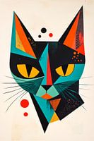 Een fascinerend samenspel van geometrische vormen en felle kleuren ontmoet de majestueuze blik van een kat. De opvallende gele ogen stralen nieuwsgierigheid uit, terwijl het artistieke ontwerp een modern tintje toevoegt. Dit kunstwerk is ideaal voor in de woonkamer, brengt levendige energie en inspireert tot ontspannen gesprekken met vrienden.