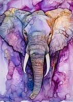 Dit ontwerp toont een majestueuze olifant in een prachtige combinatie van paarse, roze en oranje tinten, omlijst door een abstracte aquarelachtergrond. Het kunstwerk straalt een gevoel van rust en elegantie uit, perfect voor moderne interieurs. De delicate lijnen en levendige kleuren brengen de olifant tot leven, terwijl de speelse achtergrond een dynamisch en artistiek element toevoegt. Ideaal als statement piece in een woonkamer, kantoor of slaapkamer. Dit schilderij voegt warmte en karakter toe aan elke ruimte en spreekt liefhebbers van dieren en abstracte kunst aan.