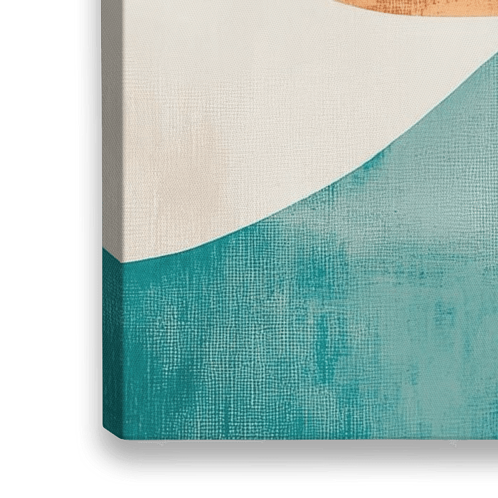 Zachte, gebogen kleuren dansen harmonieus over een licht canvas en creëren een rustgevende sfeer. De combinatie van warme aardetinten en koel aqua geeft een gevoel van ontspanning en creativiteit. Dit kunstwerk geeft de woonkamer of studeerkamer een modern, uitnodigend accent en nodigt uit om te blijven hangen en te dromen.