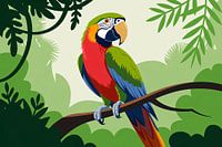 Dit prachtige ontwerp toont een levendige papegaai, die elegant op een tak zit te midden van weelderige, groene bladeren. De felle kleuren van de vogel, zoals het rode verenkleed en de heldere vleugels in blauw en groen, springen direct in het oog en brengen tropische sferen in elke ruimte. De artistieke stijl van het ontwerp benadrukt de schoonheid van de natuur op een eigentijdse manier, waardoor het perfect is voor moderne interieurs. Het beeld straalt een gevoel van vrijheid en avontuur uit, en zou een opvallend kunstwerk zijn in een slaapkamer of kantoor. Met de rustgevende groene tinten van de omgeving en de levendige kleuren van de papegaai, is dit ontwerp een echte blikvanger.