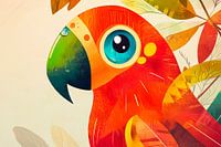 Een felgekleurde papegaai schittert in levendige kleuren, zijn stralende verenkleed en grote, nieuwsgierige ogen springen meteen in het oog. Omringd door zachte bladmotieven straalt het schilderij een vrolijke, tropische sfeer uit. Ideaal voor de woonkamer of keuken, het brengt frisse energie en een goed humeur in elke kamer.