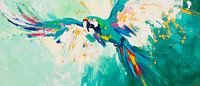 Koop dit schilderij Kleurrijke papegaai in vlucht - Dynamisch van Poster Art Shop als reproductie op canvas, aluminium dibond, (ingelijste) fotoprint, behang en ArtFrame, op maat geprint in Fine-Art kwaliteit.
