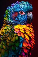Deze prachtige afbeelding toont een kleurrijke papegaai in levendige tinten en fijne details. Met zijn prachtige, opvallende veren in een caleidoscoop van blauw, geel, groen en rood trekt deze papegaai meteen de aandacht. De focus op de textuur en het hyperrealistische ontwerp maken het een geweldige keuze voor moderne interieurs. Ideaal om een woonkamer of kantoor op te fleuren, voegt het een vleugje natuur en dynamiek toe aan de ruimte. Perfect voor liefhebbers van exotische vogels en kleurrijke kunst.