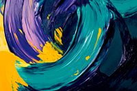 Een mysterieuze beweging ontvouwt zich in levendige, dynamische kleurlagen die de kijker meevoeren naar een fascinerende wereld. De levendige tinten turquoise, violet en geel geven de kamer een energieke sfeer, perfect voor een creatief kantoor of een inspirerende woonkamer. Hier beginnen ideeën te stromen!