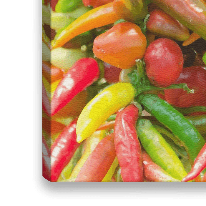Alle soorten pepers in alle maten en kleuren zijn te koop in Mercat de l’Olivar, de overdekte markthal in Palma de Mallorca, Spanje.