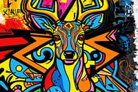 Dit opvallende en kleurrijke ontwerp trekt onmiddellijk de aandacht door de levendige patronen en felle kleuren. Het kunstwerk toont een abstract hert, uitgevoerd in een gedurfde Pop Art-stijl. De combinatie van felle tinten zoals geel, blauw en rood zorgt voor een dynamisch en levendig geheel. Dit kunstwerk is perfect voor een modern interieur waar kleur en expressie een belangrijke rol spelen. Door de eclectische mix van vormen en patronen krijgt de ruimte een unieke en energieke uitstraling. Dit kunstwerk past goed in ruimtes zoals een woonkamer, kantoor of hobbykamer en geeft een speelse maar stijlvolle touch aan het interieur. Het is een uitstekende keuze voor wie houdt van opvallende, moderne kunstwerken met een levendig karakter.