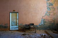 In een oude fabriek stond deze stoel tegen een prachtige beschimmelde muur.