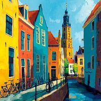 Koop dit digital art kunstwerk Kleurrijke stadsstraat van Nomo.Art als reproductie geprint op canvas, aluminium dibond, (ingelijste) fotoprint, behang en ArtFrame. Voor jou op maat geprint in Fine-Art kwaliteit.