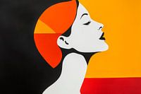 Een krachtig samenspel van heldere kleuren en geometrische vormen trekt onmiddellijk de aandacht. Het gestileerde silhouet met zijn warme haartint straalt rust en elegantie uit. Deze artistieke compositie geeft een modern tintje aan elke woonkamer en zet aan tot nadenken en dromen. Perfect voor een inspirerende kamer!