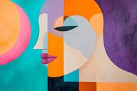 Een harmonieus samenspel van zachte kleuren en geometrische vormen ontvouwt zich in dit fascinerende kunstwerk. Het gestileerde profielaanzicht met zijn sterke, warme tinten straalt een moderne elegantie uit die perfect past in een woonkamer of een creatief kantoor. Hier wordt het alledaagse buitengewoon.