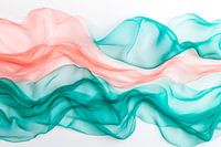 Delicate golven van zachte kleuren dansen lichtjes in de kamer en geven een dromerige lichtheid. De harmonieuze mix van zachtroze en kalmerend turquoise is uitnodigend en inspirerend. Ideaal voor de slaapkamer om een ontspannen sfeer te creëren of in de woonkamer, waar het elegantie en stijl uitstraalt.