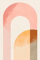 Zachte kleurtonen spelen rond de zachte bogen en nodigen je uit voor een harmonieuze reis. De pastelkleurige halve cirkels harmoniëren in rustgevende tinten, terwijl de zachte overgang van lichtoranje naar zachtgroen een subtiele diepte creëert. Deze compositie vervaagt de grenzen tussen ruimte en kleur en creëert een rustgevende, dromerige sfeer.