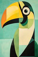 Een levendige, gestileerde toekan trekt ieders aandacht. Zijn indrukwekkende snavelvorm en harmonieuze kleurenpalet van groen en geel geven de kamer een frisse, tropische flair. Dit kunstwerk is ideaal voor in de keuken of woonkamer en brengt een vleugje exotisme en levensvreugde in huis.