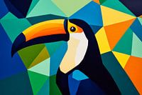 Kleurrijke geometrie komt samen in een prachtige toekan, waarvan de felle snavel en het sterke contrast met de koele kleuren een geslaagde dynamiek creëren. Dit kunstwerk straalt joie de vivre uit en brengt een vleugje tropen in elke woonkamer, waar het een gespreksonderwerp en een blikvanger wordt.