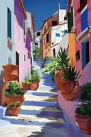 Koop dit landschapskunstwerk Kleurrijke trap in een mediterrane omgeving van Poster Art Shop op canvas, aluminium dibond, (ingelijste) fotoprint, behang en ArtFrame, op maat geprint in Fine-Art kwaliteit.
