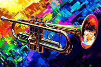 Dit unieke kunstwerk brengt een explosie van kleur en energie in elke ruimte. De trompet, een symbool van muziek en creativiteit, wordt weergegeven in een opvallende Pop Art-stijl met heldere kleuren en geometrische vormen. Het ontwerp past perfect in moderne en eclectische interieurs en trekt onmiddellijk de aandacht. Ideaal voor muziekliefhebbers en kunstverzamelaars die van levendige en dynamische decoraties houden. Voeg dit stuk toe aan uw collectie en creëer een sfeer vol inspiratie en levendigheid in uw huis of kantoor.