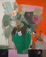 Een super speelse en kleurrijke vaas met bloemen. Dit werk is een knipoog naar klassieke stillevens: een modern stilleven, helemaal in de stijl en kleuren van nu.