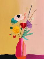 Kleurrijke vaas met bloemen. Een bijzondere blikvanger voor je interieur! Kies zelf het formaat en materiaal bij dit werk en maak het helemaal naar wens.