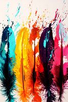 Dit kleurrijke ontwerp combineert de delicate schoonheid van veren met dynamische verfspatten in een explosie van energie en levendigheid. De heldere kleuren, zoals blauw, geel, oranje, roze en paars, maken dit kunstwerk een echte blikvanger voor moderne interieurs. Ideaal voor ruimtes die behoefte hebben aan een vleugje creativiteit en speelsheid, zoals een woonkamer, eetkamer of kantoor. De abstracte stijl geeft het werk een tijdloze uitstraling die zowel inspirerend als rustgevend kan zijn. Perfect voor liefhebbers van kunst en design die kleur en dynamiek willen toevoegen aan hun leefruimte.