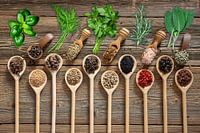 Houten lepel, specerij, kruiden, basilicum, rozemarijn, peper, zout, zaden, peterselie, salie, keuken, koken, hout, lepel, rustiek, voedsel, natuurlijk, vers, kleurrijk, aromatisch, culinair, traditie, ambacht, gastronomie, fotografie, decoratie, ingrediënten, kruiden, smaak, restaurant, recept, koriander, kaneel, tijm, peperkorrel, kardemom, kruidnagel, mediterraan, biologisch