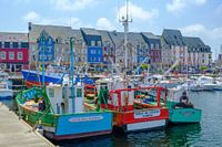 Kleurrijke vissersboten in de haven van Paimpol in Bretagne, Frankrijk tijdens de zomer. van Sjoerd van der Wal Fotografie