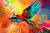 Een levendig ontwerp dat de aandacht trekt met een dynamisch en kleurrijk beeld van een vliegende papegaai. Perfect als wanddecoratie in moderne ruimtes zoals woonkamers, kantoren of creatieve studio’s. De felle kleuren en energieke compositie zorgen voor een unieke uitstraling, waardoor het ontwerp een echte blikvanger wordt. Ideaal voor liefhebbers van natuur, dieren en hedendaagse kunststijlen.