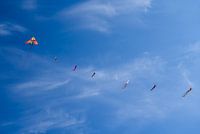 Koop de foto Kleurrijke vliegers in de lucht van Anja B. Schäfer op canvas, aluminium dibond, (ingelijste) fotoprint, behang en ArtFrame, op maat geprint in Fine-Art kwaliteit.