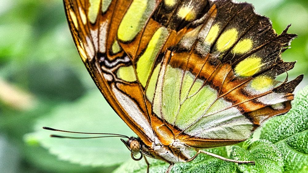 Kleurrijke vlinder op een blad, een bloem. Elegant en delicaat. Kleurrijk, fragiel en fantastisch mooi. Macro-opname van een insect