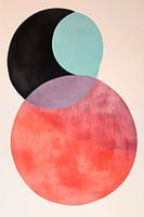 Stel je een harmonieuze compositie voor van zachte kleuren en krachtige vormen. De overlappende cirkels in rood, paars en turquoise creëren een speels evenwicht dat de aandacht trekt. Ze zijn ideaal voor een moderne woonkamer of creatieve werkruimte en geven elke ruimte een levendige, inspirerende sfeer.