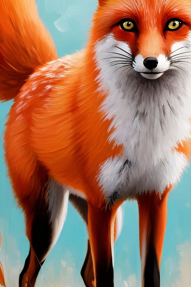 Dit prachtige kunstwerk toont een majestueuze vos, gedetailleerd weergegeven met levendige kleuren en een expressief ontwerp. De vos staat trots, met zijn dikke oranje vacht en opvallende witte borst, omringd door sierlijke veren die lijken te dansen in de lucht. Het dynamische kleurenspel van blauw, oranje en wit creëert een harmonieus en oogstrelend geheel. Dit ontwerp voegt een warme en natuurlijke sfeer toe aan elke ruimte en past perfect in een moderne inrichting. Of het nu in de woonkamer, kantoor of slaapkamer hangt, het geeft een gevoel van rust en verbondenheid met de natuur. Een perfecte keuze voor liefhebbers van dieren en kunst.