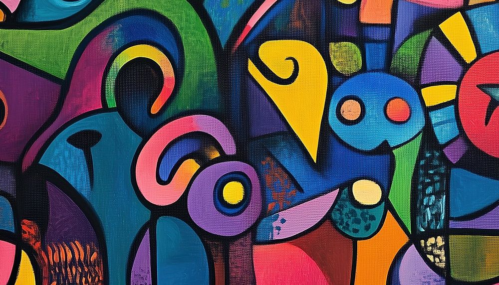 Het abstracte ontwerp en de levendige kleuren brengen energie en creativiteit in de ruimte, terwijl de mysterieuze dieren een gevoel van verwondering oproepen.